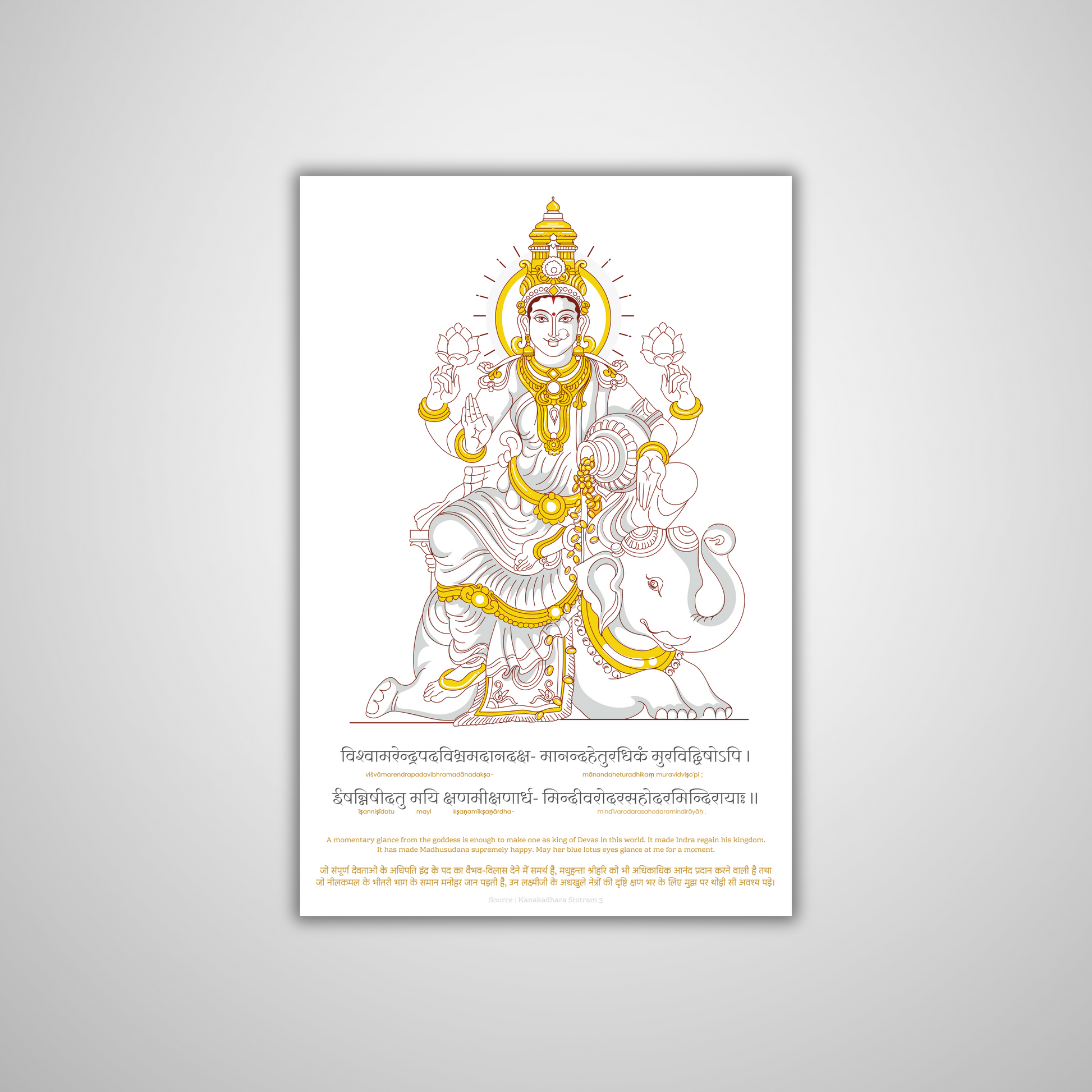 Enhance your home decor with the Maa Laxmi Sanskrit Wall Poster. This beautifully designed poster features goddess Maa Laxmi and Sanskrit mantras, adding a touch of spirituality to any room. Made with high-quality materials, this poster will bring positive energy and blessings to your home.
