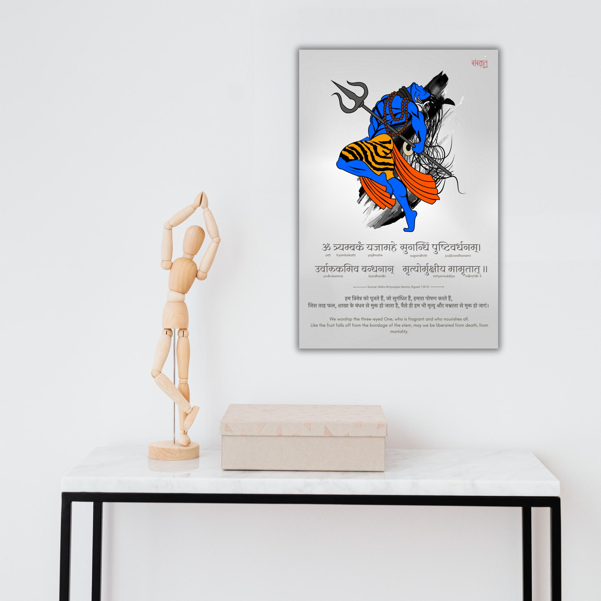Immerse your space in divine vibrations with our Maha Mrityunjaya Mantra Wall Poster. Crafted with reverence, this exclusive poster features the powerful mantra to invoke cosmic healing and protection. Printed on high-quality paper (250 GSM) and laminated for durability, it adds a touch of spiritual elegance to any room. Bring home the essence of ancient wisdom and a sense of tranquility.
